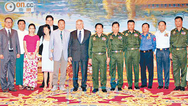 ■黎智英(左六)被揭一方面資助緬甸反對派,另一方面又拜訪緬甸軍政府洽商投資機會。(資料圖片)