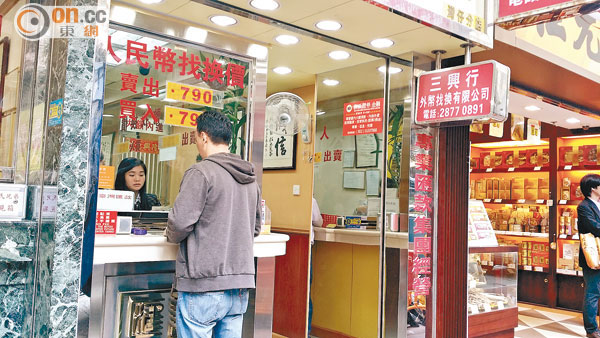 昨日記者走訪多間兌換店,人民幣現金賣出牌價介乎78.8至79,即每百港元可換78.8至79元人民幣。