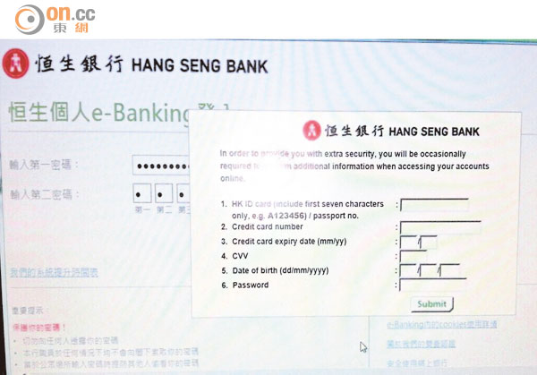 網上銀行「彈出式」視窗騙用戶資料