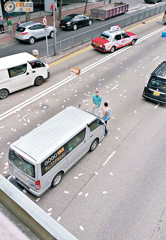 ■市民不顧危險衝出馬路執錢。(讀者提供)