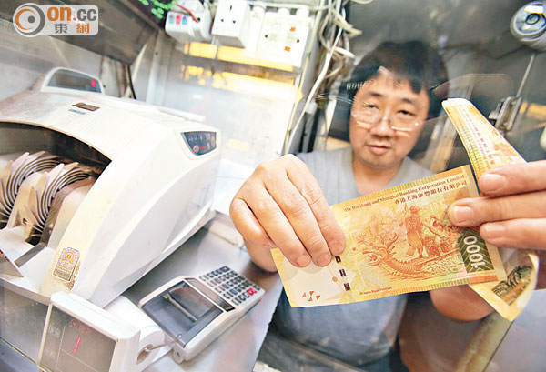 他指新版千元鈔票至今未有出現偽鈔,暫時會全面停收舊版本千元鈔票應對,只接收新版千元鈔票。而因應高清版偽鈔出現,他會即時檢視店內現存的千元鈔票,相信即使有偽鈔,數量也不會多,「始終少收到一千蚊,可能有一、兩張係偽鈔,都唔係太大問題。」