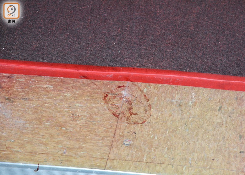■ 地上的染血鞋印清晰可見。(陳錦昌攝)