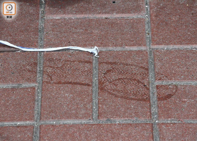 ■ 現場遺下染血鞋印。(陳錦昌攝)