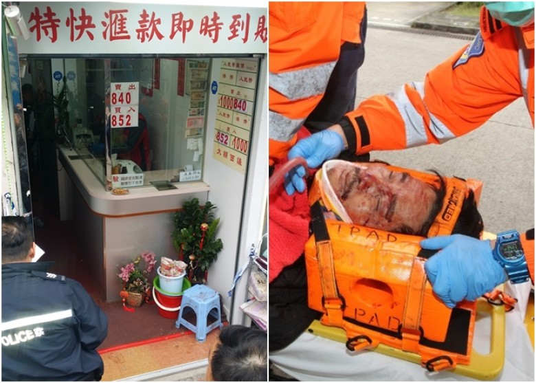 新界北總區刑事總部警司李桂華表示,相信店東今早約9時半到上址開舖,期間一名男子尾隨店東進入店內,逗留約15分鐘後離去。至早上約11時半,一名打算光顧找換店的顧客,發現店東浴血昏迷倒卧地上,於是報警求助。